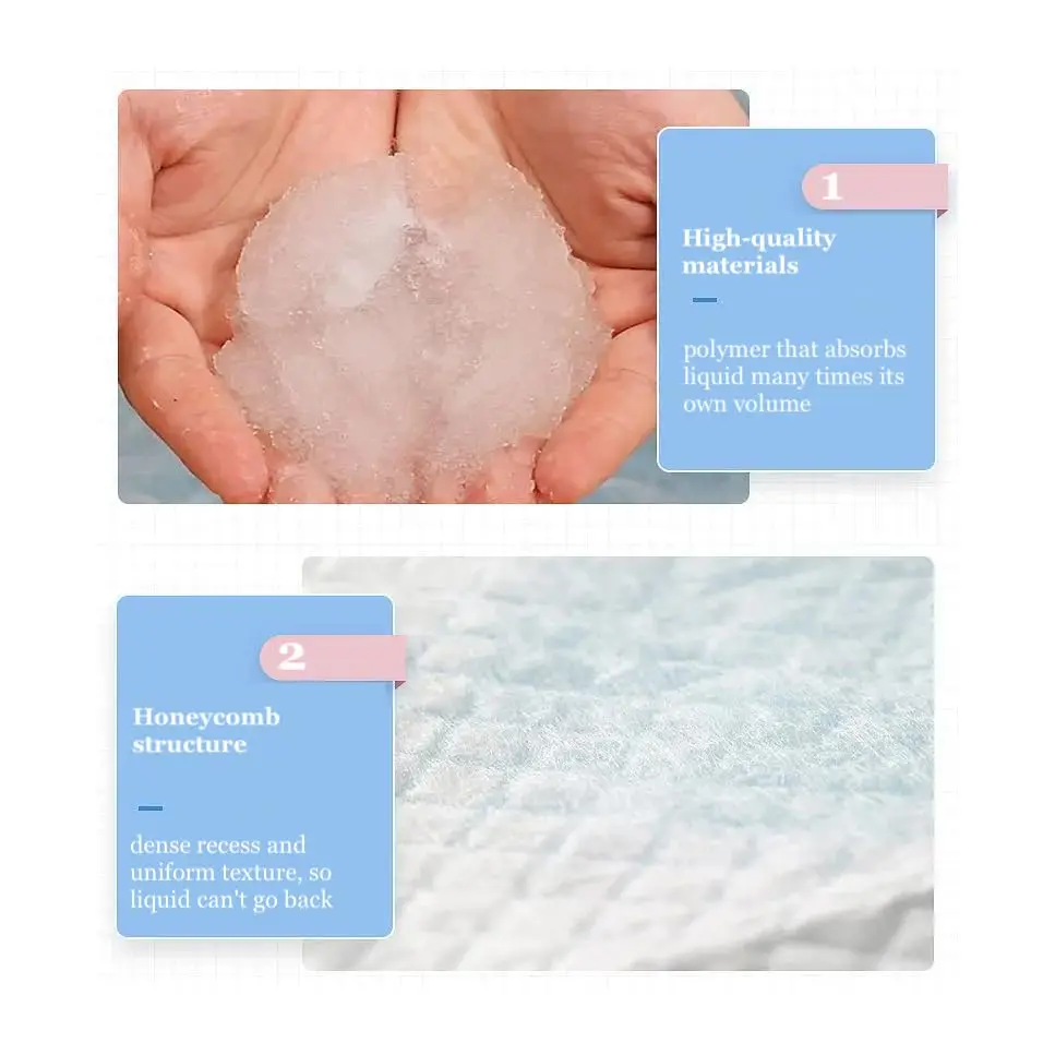 5 Layers of Protection: 1. Non-woven Fabric – soft and breathable for your pet’s comfort. 2. Tissue Paper – adds an extra layer of absorbency. 3. Fluff Pulp & Super Absorbent Polymer – locks in moisture effectively. 4. Tissue Paper – enhances absorbency further. 5. Waterproof PE Film – provides a reliable barrier against leaks.